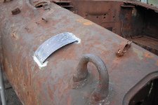 We hebben hulp gehad van Artur en Joseph bij het verwijderen van de lasrestanten die achtergebleven zijn na het gutsen. Ook hebben we de romp en koepel nog verder onder handen genomen met afbraamschijven. Vooral op de plaatsen waar de projectielen de tank verlaten hadden bevonden zich uitstulpingen. Die hebben we allemaal vlak geslepen en de gaten zullen binnenkort dichtgelast gaan worden met speciaal voor pantserstaal geschikt lasdraad dat ons ter beschikking is gesteld door Berkvens Metaalwerken b.v. te Asten (www.berkvens-metaal.nl).